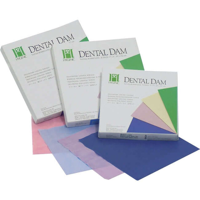 Hygenic Dental Dam is made of pure, natural rubber latex. Tough and hard to tear, the powdered material is used as a barrier during operative and endodontic procedures. Natural rubber latex Tear-resistant