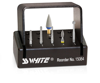 A convenient selection of SS White trimming and finishing burs and one-step polishers specifically designed to trim, contour and pre-polish anterior and posterior composite resin materials using SS White Safe End and regular Trimming and Finishing Burs. Final polishing is accomplished with Jazz Supreme single-step polishers. Kit Contents:Safe End Trimming & Finishing Burs(1 of each): SE3-10, SE3-20, SE6-10, SE6-20, SE9-10, SE9-20Trimming & Finishing Burs(1 of each): FG 7379, FG 8379, FG 7274, FG 8274Jazz Polishers:(1) Jazz Supreme Cup, (1) Jazz Supreme Large Flame SpecificationPack Size: KitAnterior Composite: YesPosterior Composite: YesSingle-Patient-Use: YesGeneral Dentistry: Yes