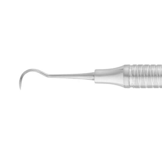 Mesial Distal 0.9 mm curette blade. Designed for scaling root concavities and furcations.