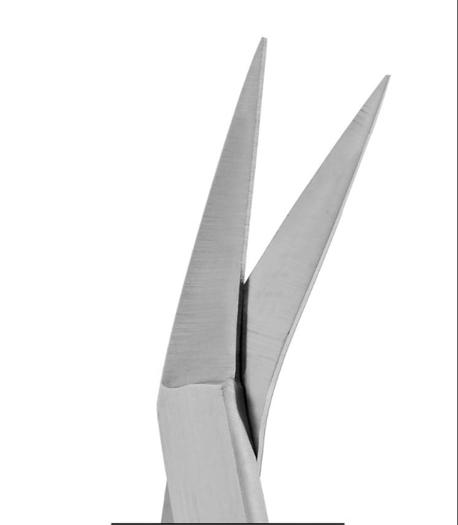 Cortellini Super-Cut scissors with 1 serrated blade used for trimming tissue or cutting sutures. Featuring curved beaks. 12.0cm Super-Cut cutting blades are honed/serrated to "razor" sharpness with opposing blade finished with fine serrations to avoid tissue slippage. Features Unique design features allow extremely smooth cutting of fine and coarse tissue with reduced trauma. Cutting blade honed to "razor" sharpness with opposing blade finished with fine serrations to avoid tissue slippage. Fabricated from special high-tempered surgical stainless steel to provide longer-lasting cutting edges and corrosion resistance. Single gold-colored handle ring for easy identification. Super-Cut scissors are ideal for cutting interproximally.