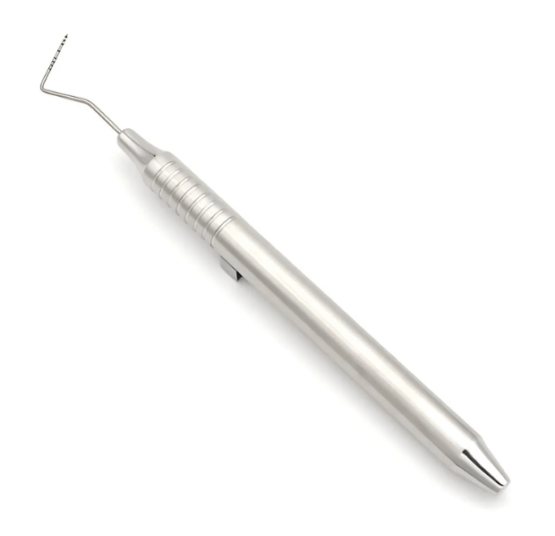 Heidbrink Root Tip Picks, Left and Right Extraction Elevators – Gold Heidbrink Root Tip Picks are specialized Surgical Instruments designed for the delicate task of retrieving root tips, fragments, or foreign objects from tooth sockets. These instruments are particularly useful in cases where a root tip has fractured or become embedded during a tooth extraction. Their precision design ensures effective and safe removal, making them essential tools for dental professionals. Application: Specifically crafted for precise retrieval and elevation of root tips during extractions. Set: Includes both left and right elevators for versatility in surgical procedures. Finish: Gold coating enhances durability, corrosion resistance, and visibility in the surgical field. Design: Ergonomically designed with slim tips for controlled access to difficult-to-reach areas. This set of Heidbrink Root Tip Picks is a high-quality choice for surgical extractions, providing dental professionals with the reliability and precision needed for effective root tip removal.