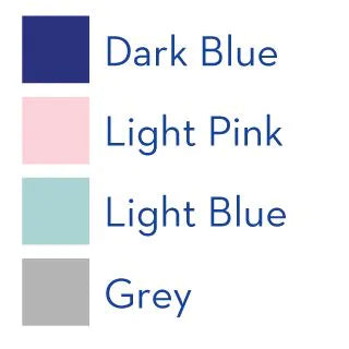 Available in four attractive colors: Dark Blue, Light Blue, Cool Gray, and Magenta
