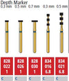 FG #834.016 Coarse Grit, Depth Marker 0.3mm Diamond Bur. Package of 5 Burs.
