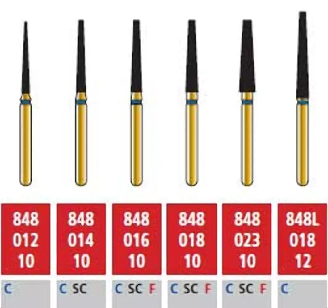 FG #848L.018 Coarse Grit, Flat End Taper Diamond Bur. Package of 5 Burs.