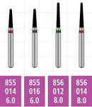 FG #877.010 Coarse Grit, Beveled Cylinder Diamond Bur. Package of 5 Burs.