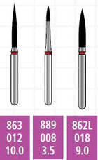 FG #862.018 Fine Grit, Flame Shaped, Single Use Diamond Bur. Package of 25 Burs.