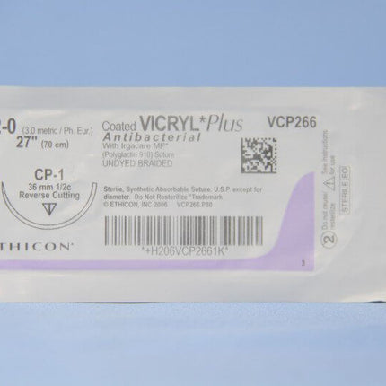 Coated Vicryl™ Plus Polyglactin 910 with Irgacare MP Antibacterial Suture CP-1 1/2 Circle Reverse Cutting Needle Size 2-0 Braided