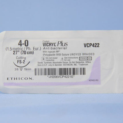 Coated Vicryl™ Plus Polyglactin 910 with Irgacare MP Antibacterial Suture FS-2 3/8 Circle Reverse Cutting Needle Size 4-0 Braided