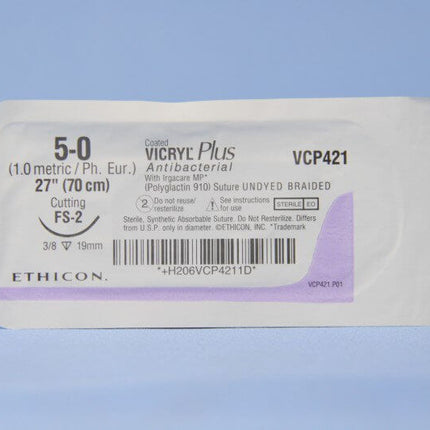 Coated Vicryl™ Plus Polyglactin 910 with Irgacare MP Antibacterial Suture FS-2 3/8 Circle Reverse Cutting Needle Size 5-0 Braided
