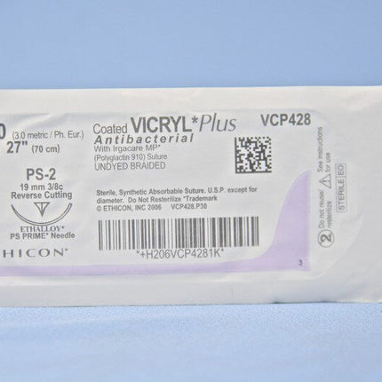 Coated Vicryl™ Plus Polyglactin 910 with Irgacare MP Antibacterial Suture PS-2 3/8 Circle Precision Reverse Cutting Needle Size 2-0 Braided